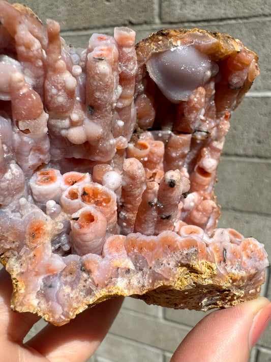 Stalactitic chalcedony geode (repaired) "The Waffle Cone"