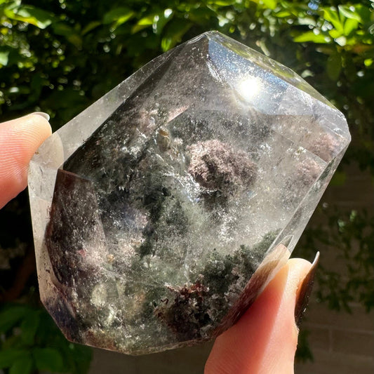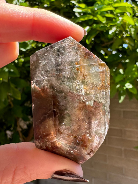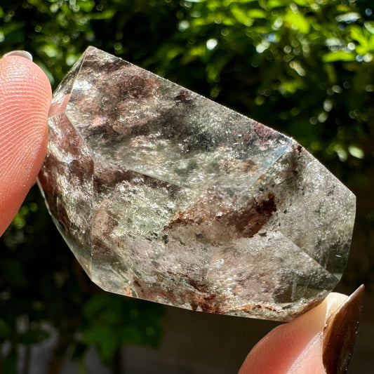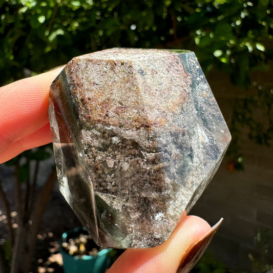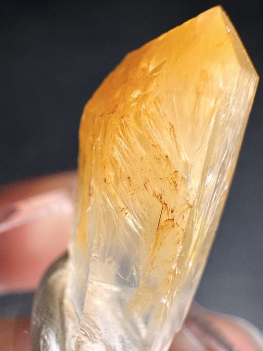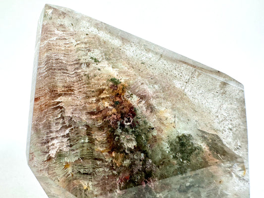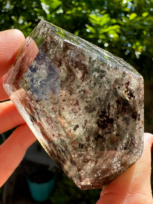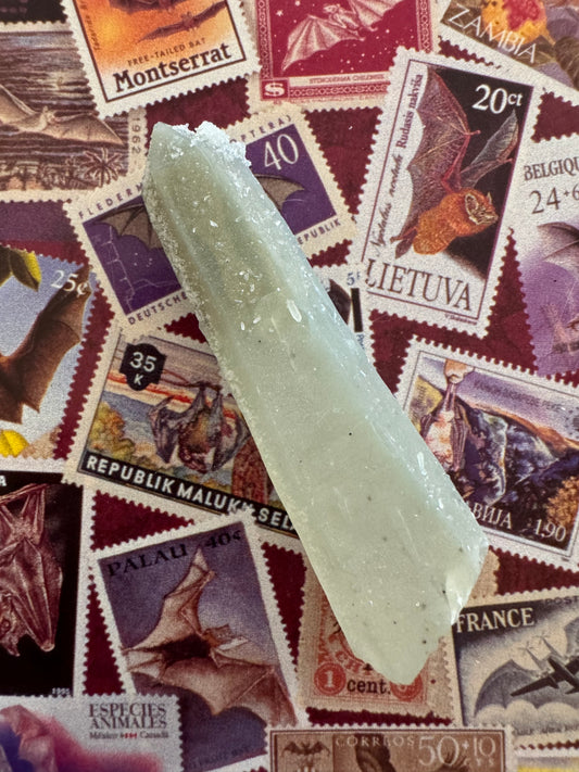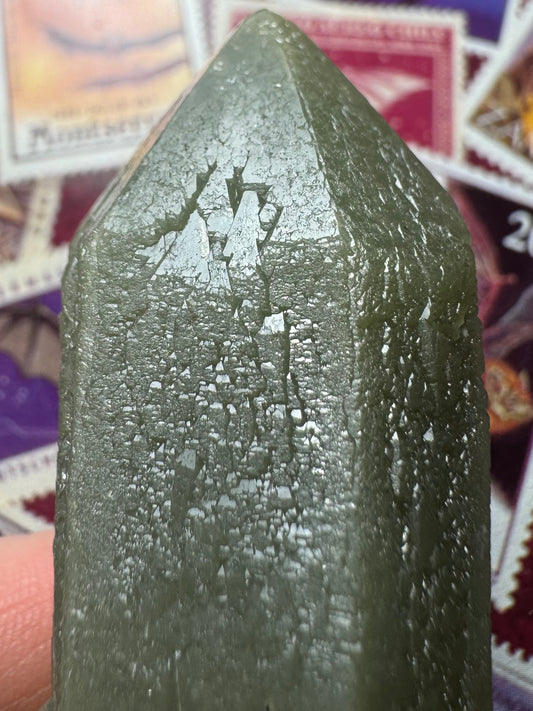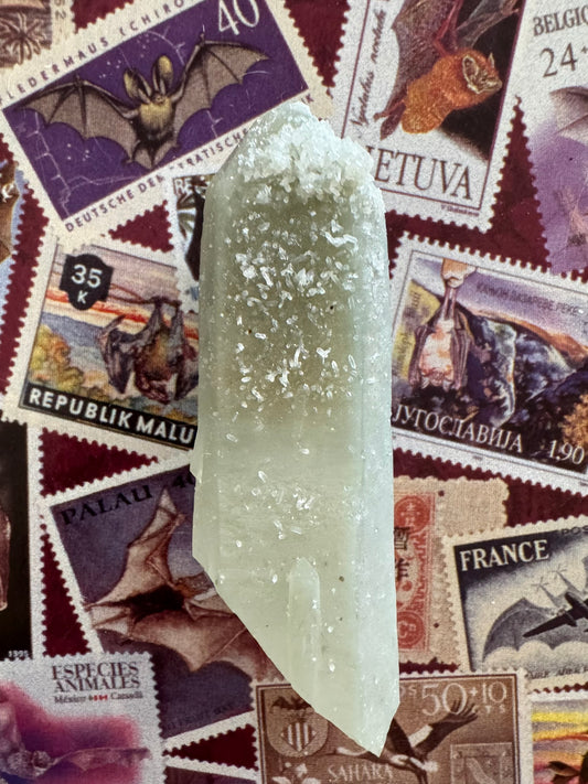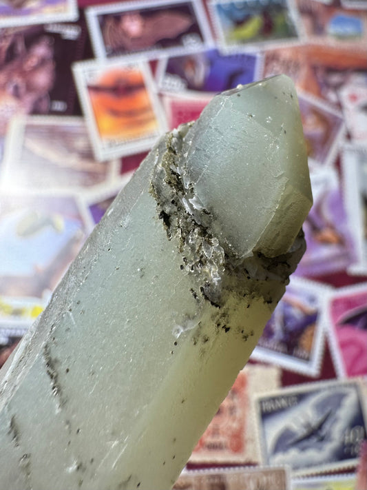 Hedenbergite quartz point with sprouting growth and sugary quartz crystals