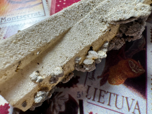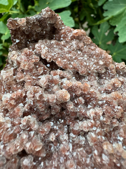 Hematite-included colorless calcite druzy