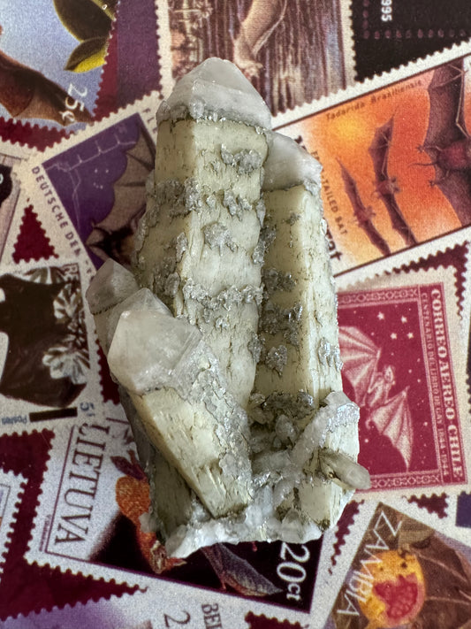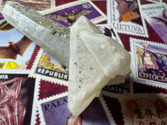 Inner Mongolian quartz point pair tinted with hedenbergite