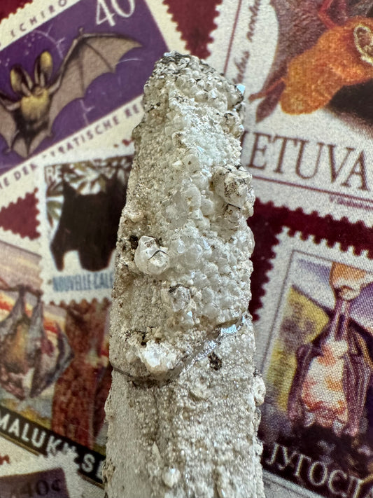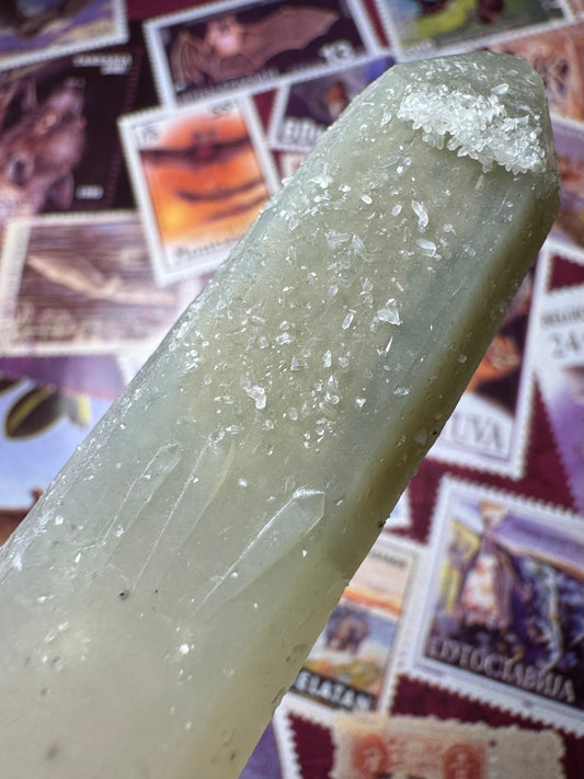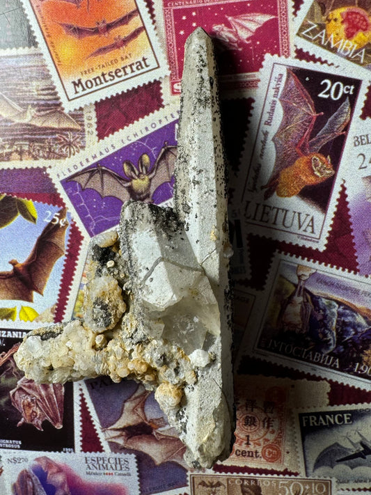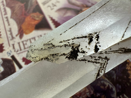 Hedenbergite quartz point with sugary quartz crystals