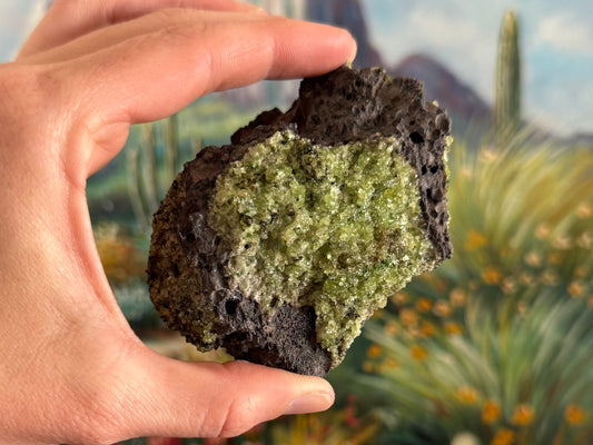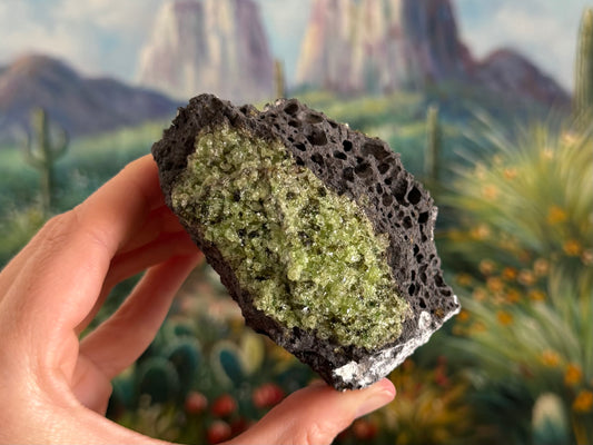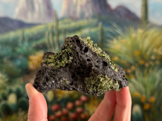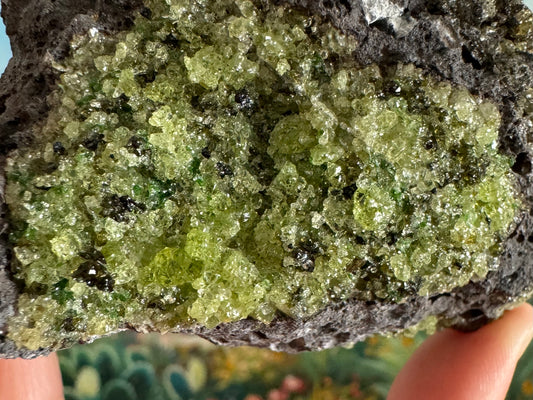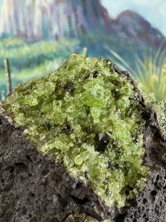 San Carlos peridotite with chrome diopside and spinel in volcanic basalt, vivid gemmy color